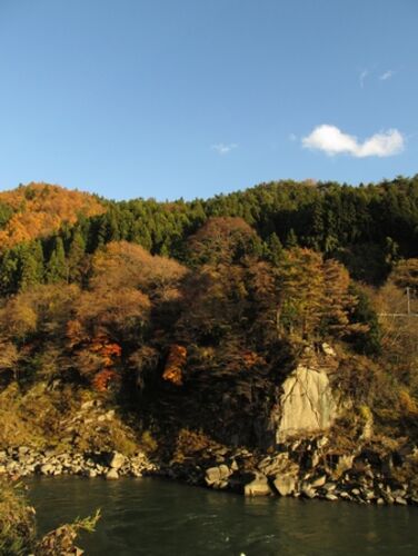 霊山からの帰り、国道349号経由で仙台に戻りました。 1週間ほど前のことですが、阿武隈渓谷沿いの紅葉は終わりかけの様子でした。 低い日が葉を照らす 阿武隈急行線 わずかに残る色づいた葉 国道349号、酷道の類かも 険しい地形